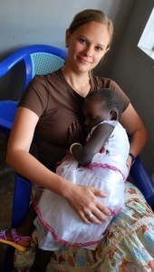 At the end of the second day, as a gift for completing the training, each of the women was given a certificate of completion as well as 10 birthing kits provided by the United Methodist Committee on Relief (UMCOR). To my surprise, the birthing kits did not contain the “luxuries” we are used to having here in the states, like anesthetic or pain killers, but instead include the basic necessities for a clean birth. Each kit contains a 1 oz bar of soap, a pair of rubber gloves, a square yard of clean plastic sheeting, a 3 inch piece of cotton string, a razor blade and two receiving blankets. All of the contents are contained in a plastic bag to protect them from dirt. You would not believe the women’s excitement at receiving these things. As each woman’s name was called, she would dance down the center aisle and sing praises to God for his provision. She would take the certificate and hold it in the air and thank God for the training he had given here. She clutched on to the bag of birthing kits, elated to know that the next ten babies she delivered would have a sanitary place to enter the world. I was blown away by the compassion and dedication of these women to help all the new mommies of their communities.