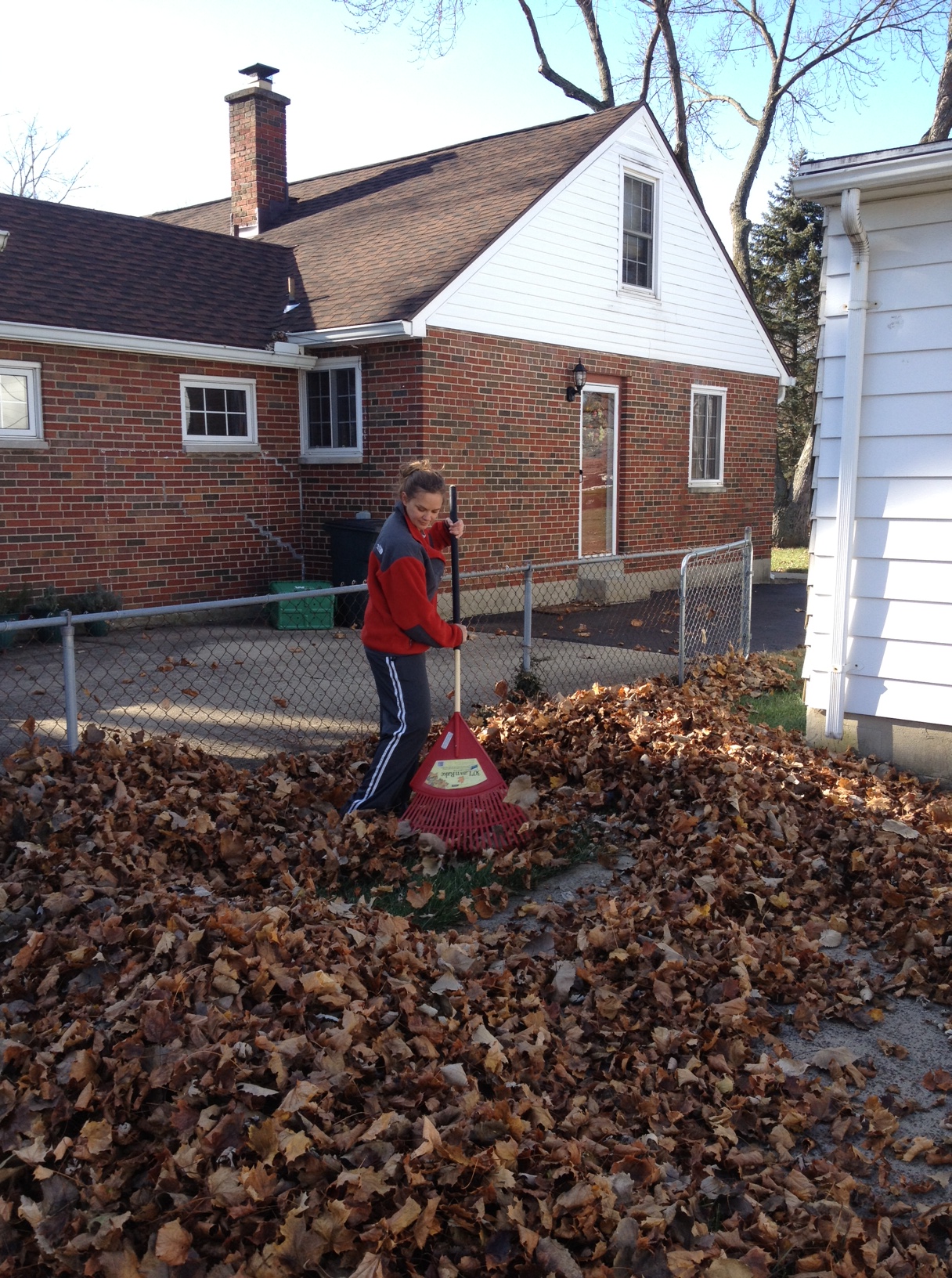 I followed him out with the things he needed, and as he climbed up his ladder I headed to the garage for a rake to finally take care of the leaves in my back yard.  A big part of me wanted him to give me a hand with the leaves, but I chuckled to myself knowing that if I asked he would recite his mantra “Never do anything for someone that they can do themselves.”  I knew he would tell me that I was perfectly capable of raking them on my own, so I hadn’t even botheredto look for a second rake.